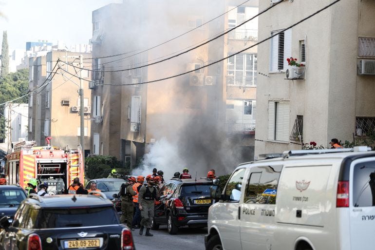 以色列空军开展了广泛的拦截行动以应对威胁,以色列中部和北部地区回荡着剧烈的爆炸声。尽管采取了防御措施,但在以色列北部,一枚被拦截导弹的碎片击中了一栋九层住宅楼,造成一处公寓严重受损,并导致一名50岁男子受轻微爆炸伤。
